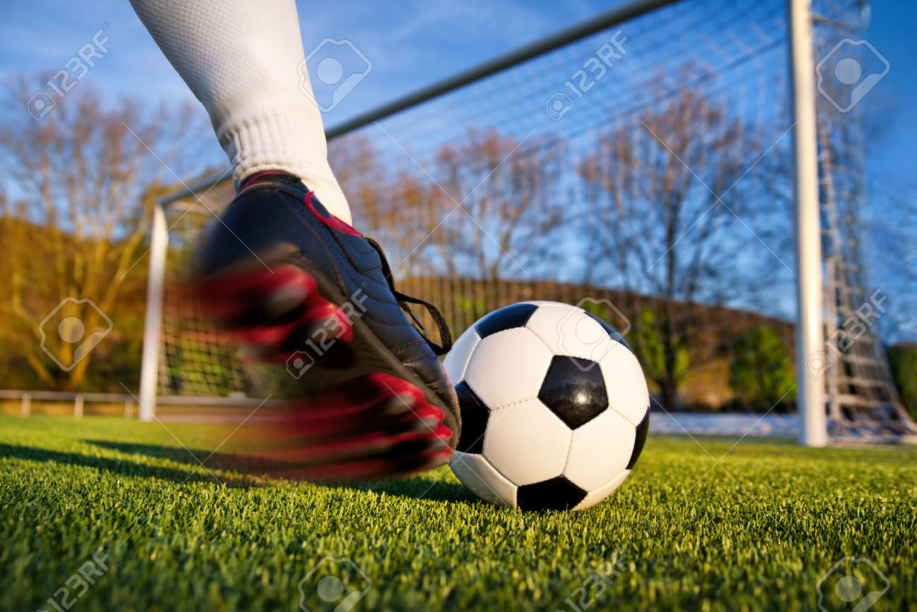 Football Or Soccer Shot With A Neutral Design Ball Being Kicked With Motion Blur On The Foot And Natural Background Stock Photo Picture And Royalty Free Image Image 27280599